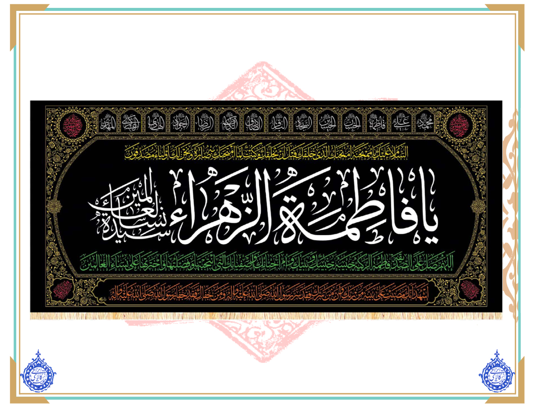 پرچم مخمل یا فاطمه الزاهرا (س) طرح 14 معصوم سایز 310 * 140 سانتی متر مناسب برای ایام فاطمیه ( شهادت حضرت زهرا (س)) و قابل استفاده در در ادارات ، هیئت ها ، مساحد و جلسات مذهبی با کیفیت عالی