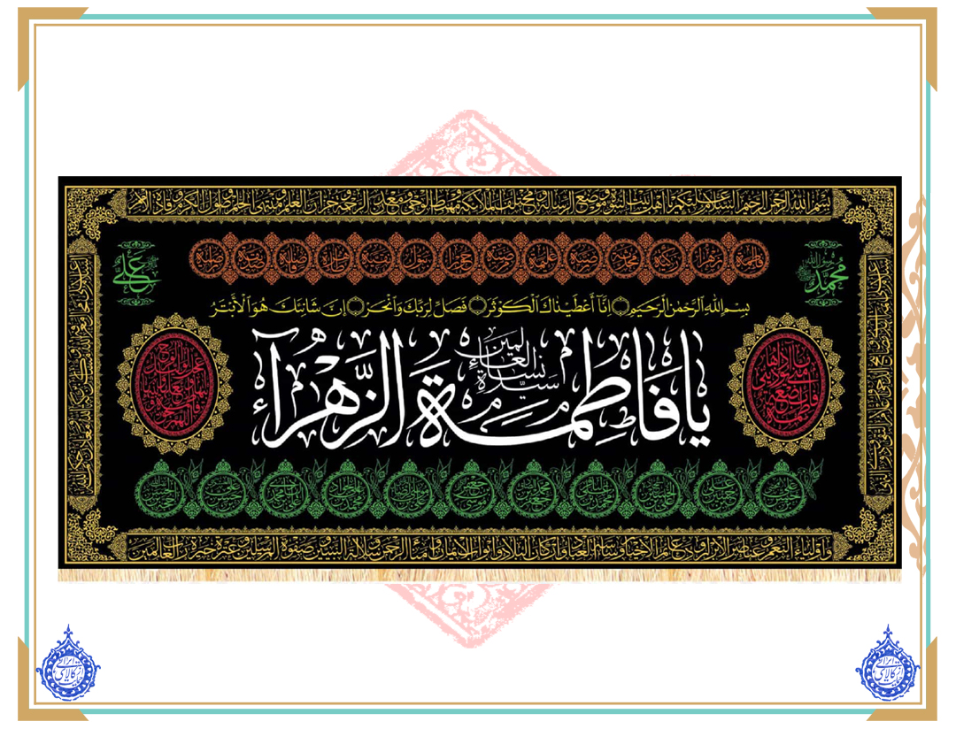 پرچم مخمل یا فمطه الزهرا (س) طرح شمسه سایز 310 * 140 سانتی متر مناسب برای ایام فاطمیه ( شهادت حضرت زهرا (س)) و قابل استفاده در در ادارات ، هیئت ها ، مساحد و جلسات مذهبی با کیفیت عالی